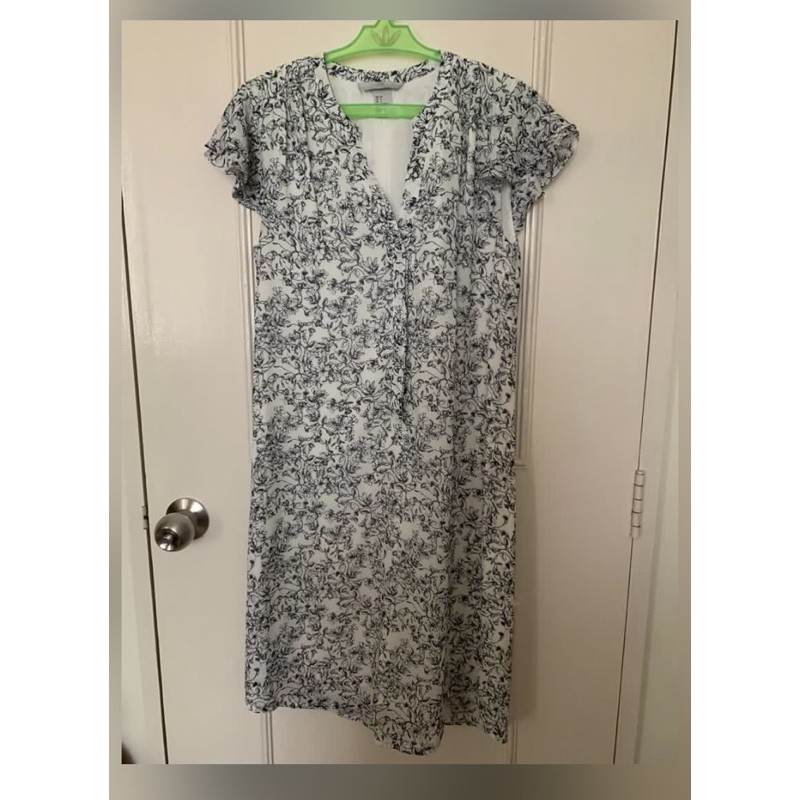 Mama Butterfly Sleeved Dress White Blue Floral Ladies H M